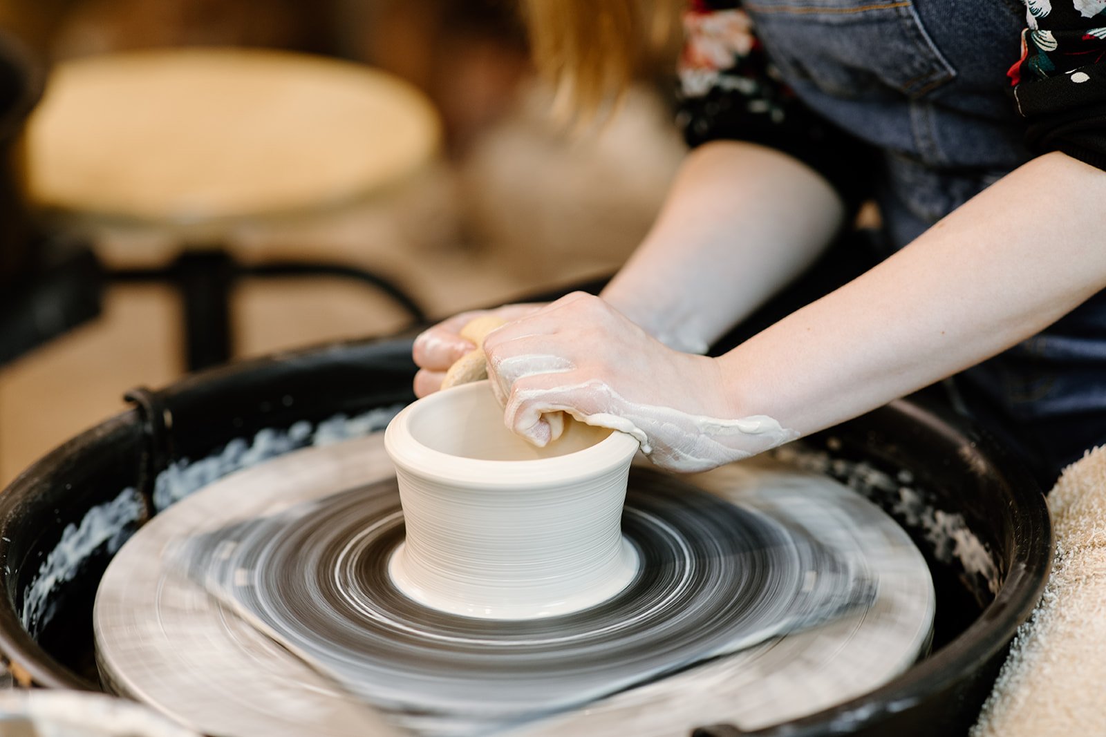 The Beginner Wheel Course offers step-by-step instruction and hands-on practice in foundational pottery wheel techniques, guided by experienced instructors.